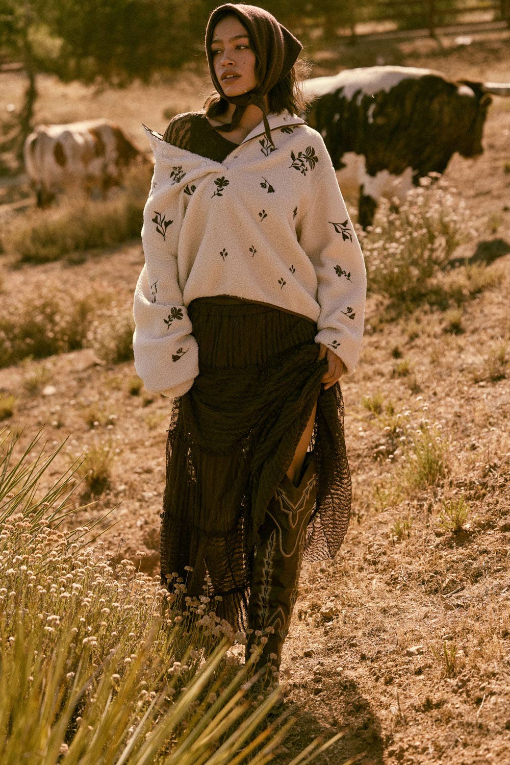 Floral-Embroidered Fleece Pullover