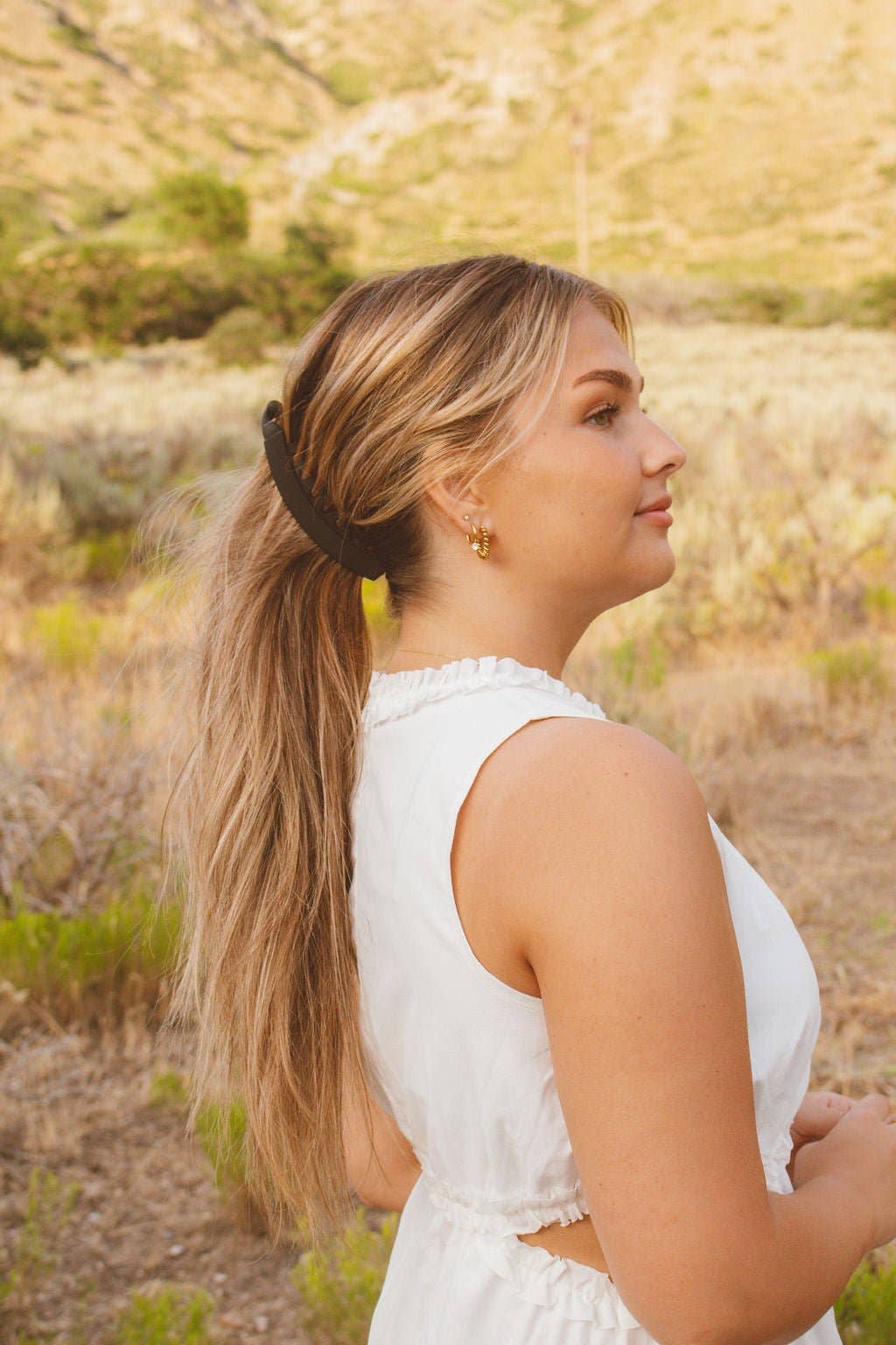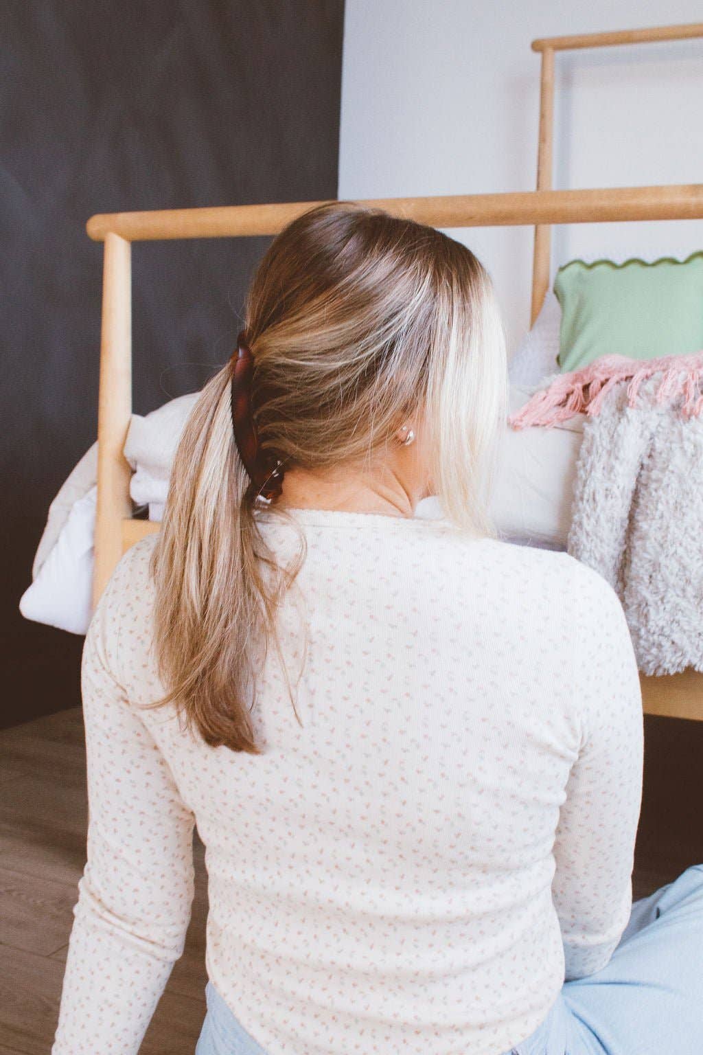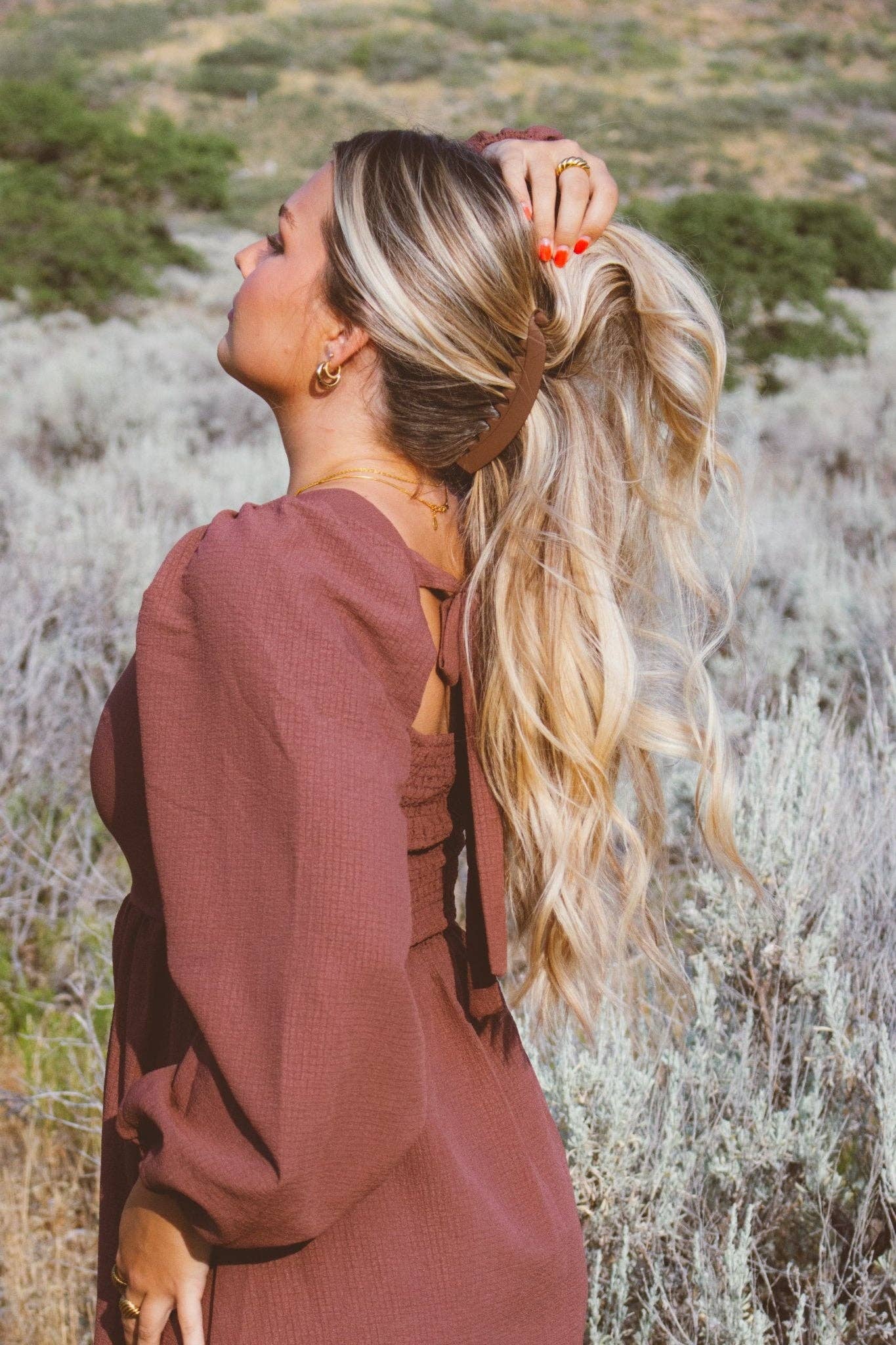The 80's banana clip is back. The most popular way to use a banana clip is to pull hair into a ponytail, which makes hair appear to cascade down like a waterfall. Not only is it wildly flattering, but it only takes seconds to put together. A perfect style that allows us to skip shampoo day and will help us get out of bed and looking cute in the morning. This clip is a gorgeous brown color with a matte finish. I'm obsessed.